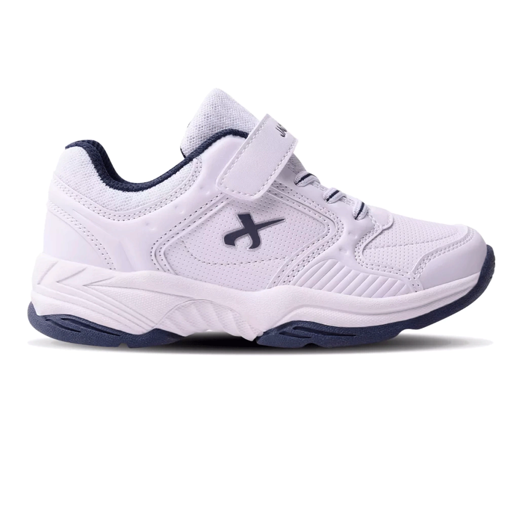 Calzados estilo clásico con look colegial deportivo, hechas parcialmente de cuero sintético. Los condones elásticos la hacen fáciles de poner y quitar la tira de abrojo da un ajuste seguro.
